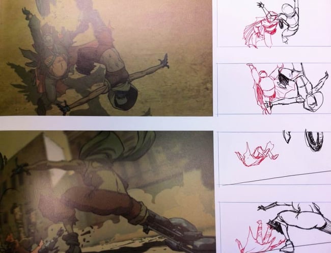 Book 1 has Sean's Gumshoes 4 Hire story and Ryan's Pancratia story! Each is brand new. Each is the first part of a bigger story. Gumshoes features a Scooby Doo-esque team of teenage detectives chasing a criminal gang. Ryan offers the latest episode of his futuristic urban warfare and includes his storyboards alongside the key frames.